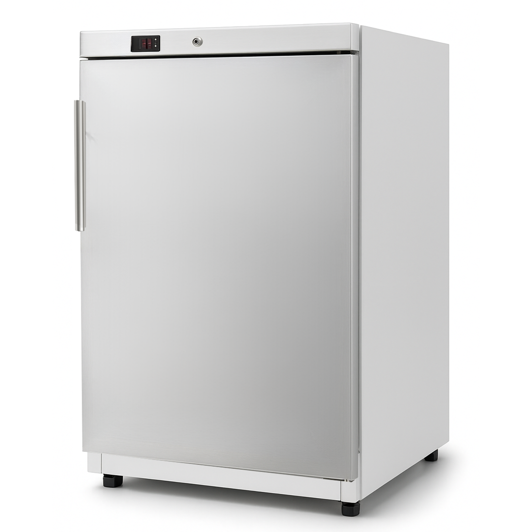 Барна морозильна шафа HURAKAN HKN-RFS115V — компактне професійне обладнання для зберігання заморожених продуктів у закладах HoReCa, барах, кафе чи ресторанах. Завдяки невеликим розмірам легко розміщується навіть у обмежених просторах, забезпечуючи стабільний температурний режим від –18 до –22 °С.